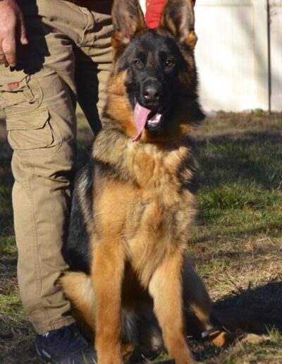 Very nice female with super character and temperament. Super anatomy and movement, top pigment, deep black and red. Very nice female for show, breeding, working, or as a family member.